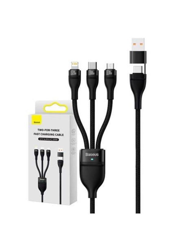 Vi har fundet Baseus 3in1 Usb Cable Flash Series 2 Usb C Micro Usb Lightning 100w 1 2m Black fra Baseus hos Proshop.dk i kategorien Usb Kabel. Baseus-kablet er udstyret med 3 udgangsporte, så du kan oplade 3 enheder samtidigt og spare tid. Det understøtter også 100 W hurtig opladning. Det udmærker sig ved sin brede kompatibilitet og solide udførelse. Spild ikke tiden med at oplade dine enheder!