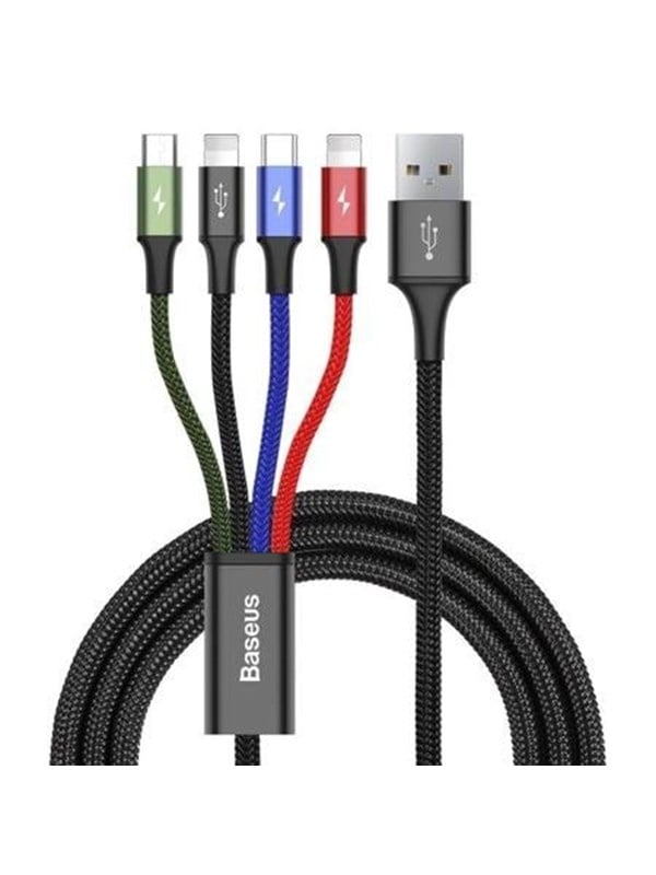 Vi har fundet Baseus Fast Usb Cable 4in1 Usb C 2x Lightning Micro 3 5a 1 2m Black fra Baseus hos Proshop.dk i kategorien Usb Kabel. Kablet i høj kvalitet giver dig mulighed for hurtigt og nemt at oplade fire enheder på samme tid – to med Lightning-stik og en med USB-C- og Micro USB-stik. Derudover understøtter et Lightning-kabel dataoverførsel. Hvert kabel har en anden farve, så du ne