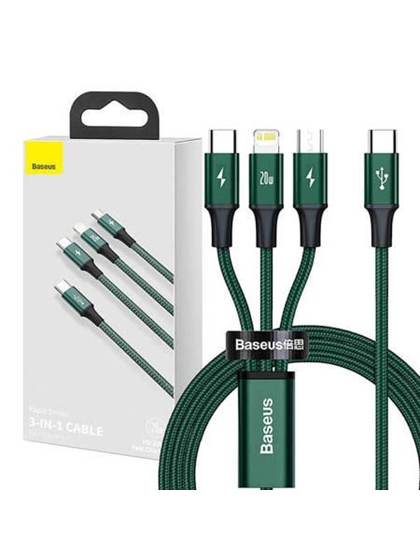 Vi har fundet Baseus Rapid Series 3 In 1 Cable Usb C For M L T 20w 1 5m Green fra Baseus hos Proshop.dk i kategorien Usb Kabel. Nu kan du nemt oplade op til 3 enheder samtidigt. Baseus USB-C til USB-C, Lightning og micro USB-kabel vil ikke kun finde anvendelse derhjemme, men også i bilen. Det understøtter hurtigopladning PD 20W og 18W og giver dig også mulighed for at overføre fil
