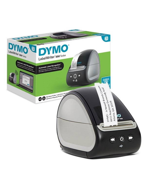 Vi har fundet Dymo Labelwriter 550 Turbo Pc Mac Etiketprinter fra Dymo hos Proshop.dk i kategorien Labelprinter. Med den nye og forbedrede LabelWriter™ 550 Turbo-printer får du superhurtige, effektive løsninger til forretningsbreve, arkivering, besøgsstyring eller andre etiketbehov ved hjælp af LAN-muligheder for at udskrive over et netværk af computere (tilsl