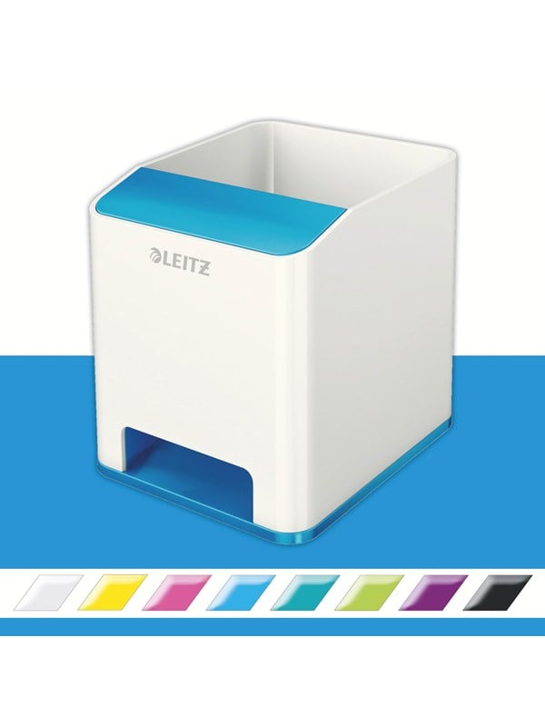 Vi har fundet Leitz Sound Penneholder Wow Blå fra Leitz hos Proshop.dk i kategorien Skrivebordstilbehoer. Slående, stilfulde farver med en skinnende finish i unik tofarve kombination. Med lydbooster funktion til smartphones.Giv dit skrivebord en WOW makeover med denne og andre Leitz WOW produkter i en serie af iøjnefaldende farverUnik designet penneholder – o