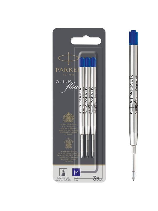 Vi har fundet Parker Quinkflow Blækpatroner Til Kuglepen Medium Spids Blå 3 Stk fra Parker hos Proshop.dk i kategorien Skrive Og Tegnevaerktoejer. Genopfyld din Parker-kuglepen med klart QUINKflow-blæk. Med en jævn, let skrivestil fanger det flotte blæk dine tanker på brillant vis. Hver blækpatron er fremstillet med henblik på pålidelige skriftegenskaber. Brug blækpatroner til at erstatte eksisteren