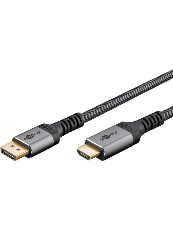 Vi har fundet Pro Displayport 1 2 Hdmi 2 0 Sleeved 3m Sort fra Pro hos Proshop.dk i kategorien Skaermkabel. DisplayPort til HDMI kabel, DisplayPort (han) standard 1.2 til HDMI (han) standard 2.0, understøtter op til: 60 Hz ved 4K opløsning, maksimal transmissionshastighed 21.6 Gbit/s, med lås, guld belagt stik, rundt kabel, farve: sort, længde: 3 meter