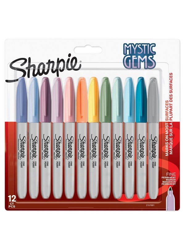Vi har fundet Sharpie Permanente Markers Mystic Gem Special Edition Fin Spids Assorterede Farver 12 Stk fra Sharpie hos Proshop.dk i kategorien Skrive Og Tegnevaerktoejer. Sharpie Permanent Markers, der er lavet til at markere praktisk talt overalt, inspirerer dig til at transformere almindelige overflader til lidenskabeligt kreative statements. Med special-udgave af Mystic Gem-farver kombinerer disse Sharpie Markers bløde