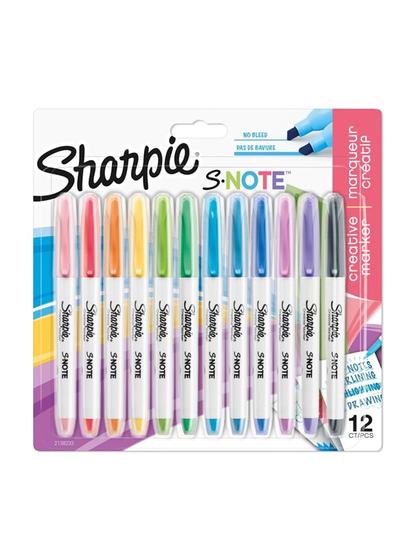 Vi har fundet Sharpie S Note Alsidig 2 I 1 Spids Kreativ Markeringspen 12 Styk fra Sharpie hos Proshop.dk i kategorien Skrive Og Tegnevaerktoejer. S-Note Creative Markers er kraftige, udtryksfulde og sjove, og de tilfører et hint af farve til notater, understregning, dagbøger, tegninger og meget mere.Alsidighed er førsteprioritet med denne mejselspids, der gør, at du hurtigt kan skifte mellem tynde