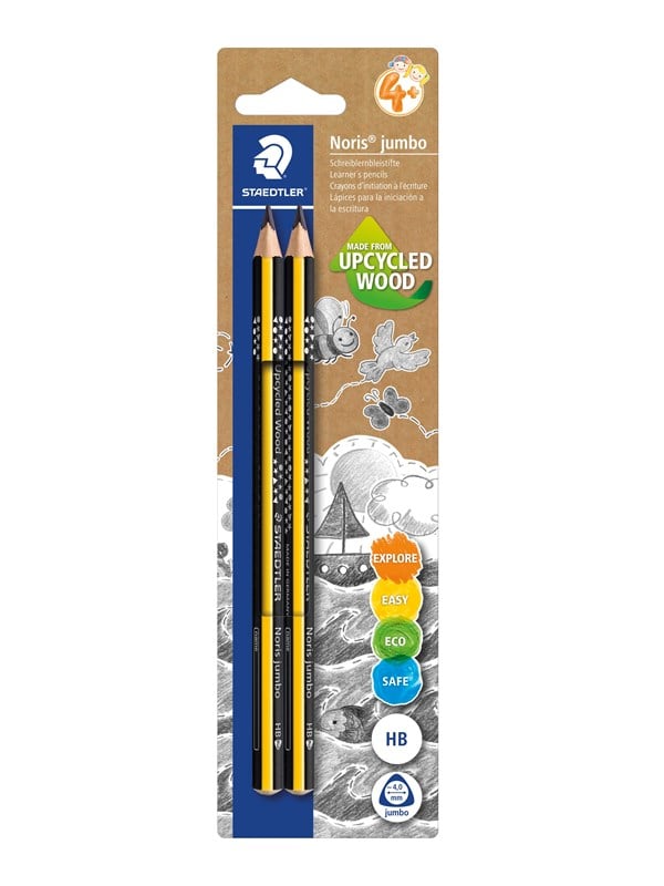 Vi har fundet Staedtler Noris Jumbo Blyant Hb 2 Bk Fsc 100 fra Staedtler hos Proshop.dk i kategorien Skrive Og Tegnevaerktoejer. Noris® jumbo blyant -Ergonomisk trekantet greb for afslappet og let tegning. -Ideel til de første tegne -og skriveoplevelser. -Ekstra brudstærk 4 mm mine i HB. -Træ fra certificerede, bæredygtigt forvaltede skoveBlisterkort med 2 stk.